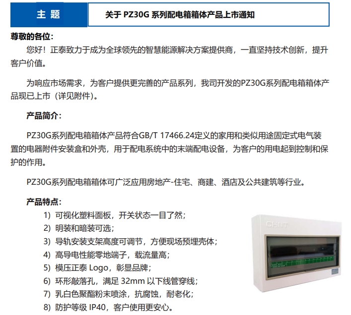 關(guān)于 PZ30G 系列配電箱箱體產(chǎn)品上市通知