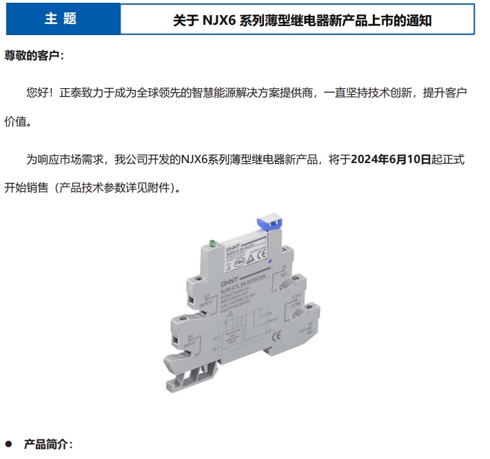 關(guān)于 NJX6 系列薄型繼電器新產(chǎn)品上市的通知