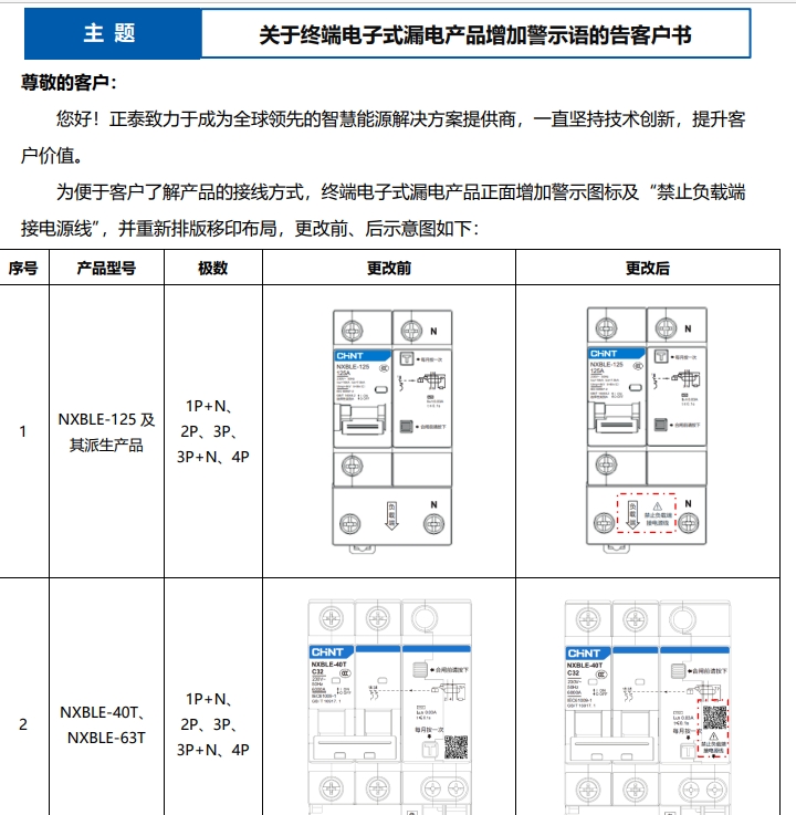 關(guān)于終端電子式漏電產(chǎn)品增加警示語(yǔ)的告客戶書(shū)
