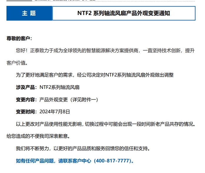 NTF2 系列軸流風(fēng)扇產(chǎn)品外觀變更通知