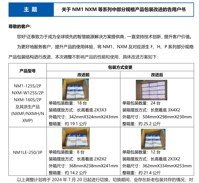 關(guān)于 NM1 NXM 等系列中部分規(guī)格產(chǎn)品包裝改進(jìn)的告用戶書(shū)