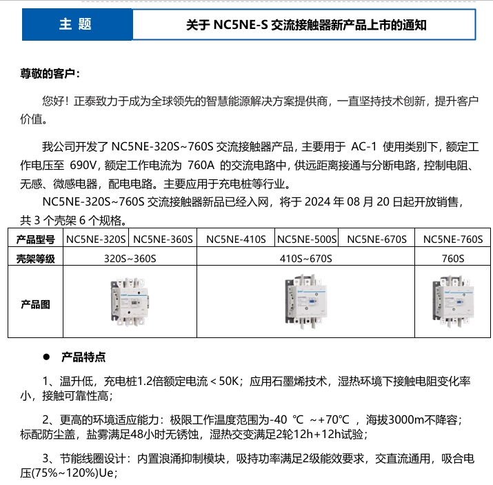 關(guān)于NC5NE-S交流接觸器新產(chǎn)品上市的通知