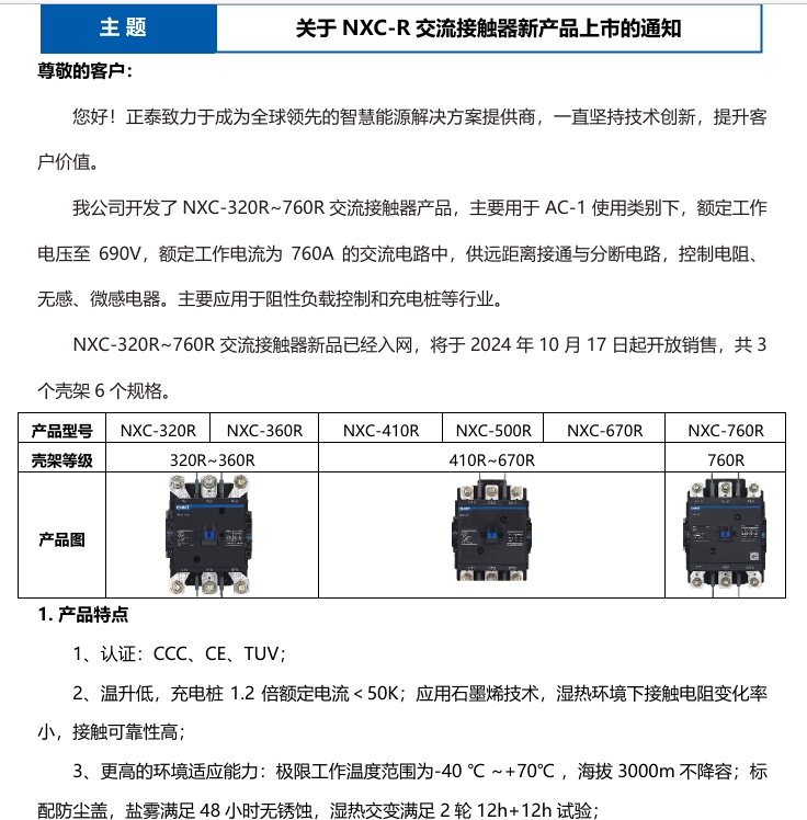 關(guān)于NXC-R交流接觸器新產(chǎn)品上市的通知