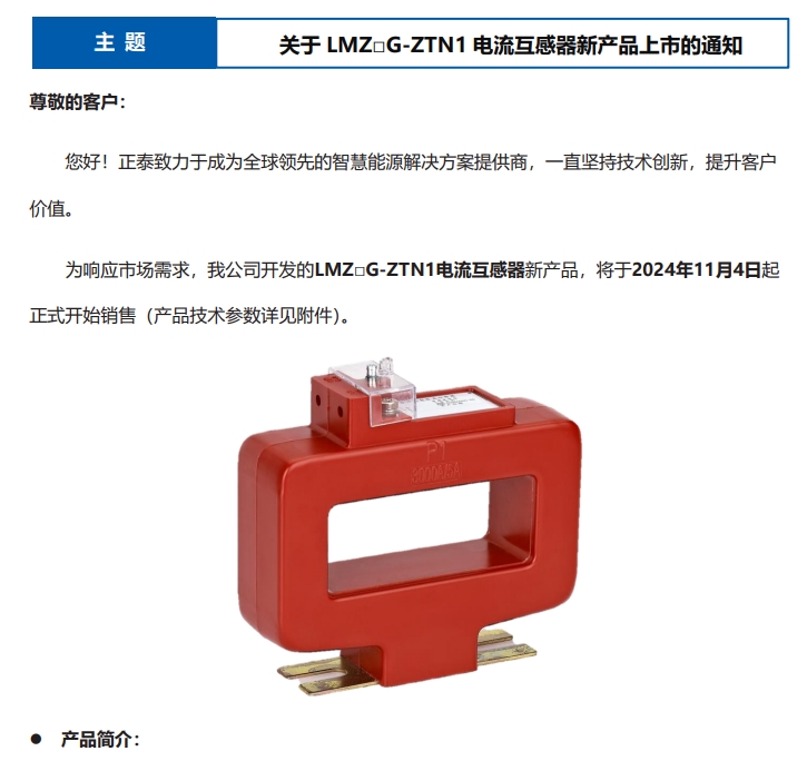 關(guān)于 LMZ□G-ZTN1 電流互感器新產(chǎn)品上市的通知