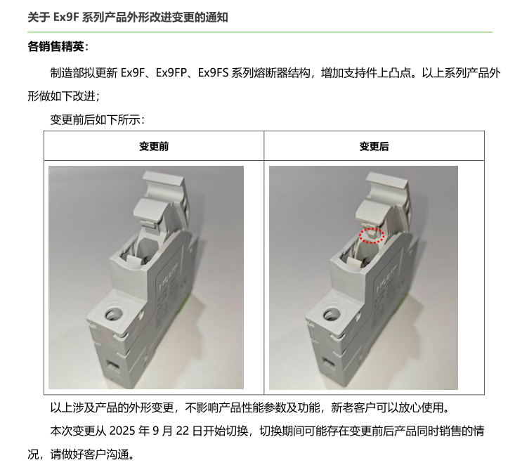 關(guān)于 Ex9F 系列產(chǎn)品外形改進(jìn)變更的通知
