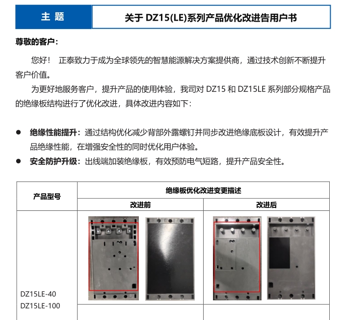 關于 DZ15(LE)系列產(chǎn)品優(yōu)化改進告用戶書