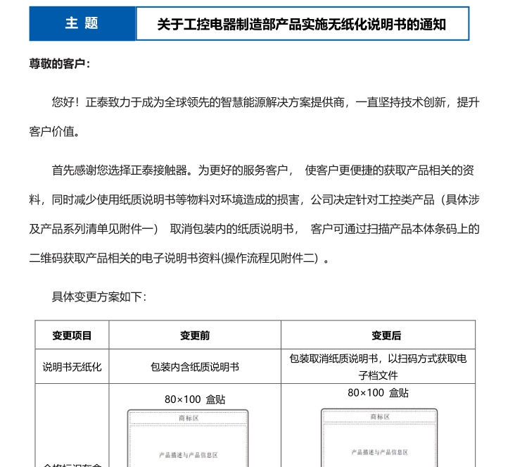 關(guān)于工控電器制造部產(chǎn)品實(shí)施無(wú)紙化說(shuō)明書的通知