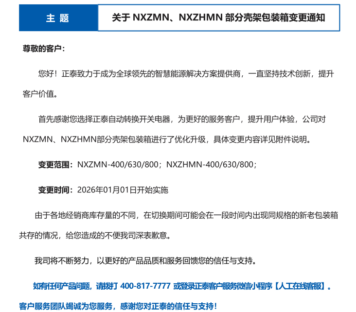 關(guān)于 NXZMN、NXZHMN 部分殼架包裝箱變更通知